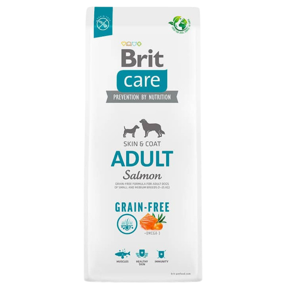 Brit Care Adult Salmón Grain Free es un alimento sin cereales con salmón y patatas indicado para perros adultos de razas pequeñas y medianas (1 – 25 kg). Alimento sin cereales super premium para favorecer la salud de la piel y el pelaje, el sistema circulatorio y el corazón, una excelente condición física y la inmunidad en perros adultos de razas pequeñas y medianas.
