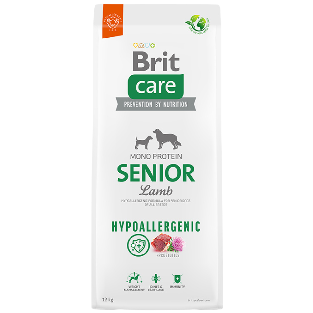 Brit Care Senior Lamb Hypoallergenic es un alimento hipoalergénico para perros viejitos de todas las razas. Formulado con proteínas de alta calidad y bajo en grasa que favorece la digestión y disminuye el riesgo de sobrepeso. Rico en ácidos Omega-3, vitamina B12 y ácido fólico que disminuyen el riesgo de enfermedades cardiovasculares. Nuevo empaque reciclable.